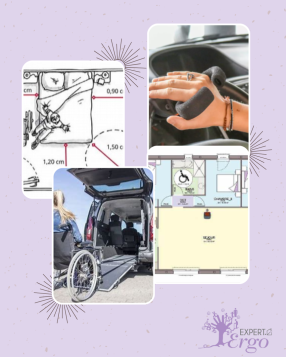 Aide à la reconfiguration des espaces : circulation du fauteuil roulant, salle de bain adaptée, chambre médicalisée.